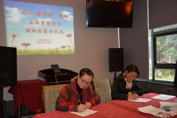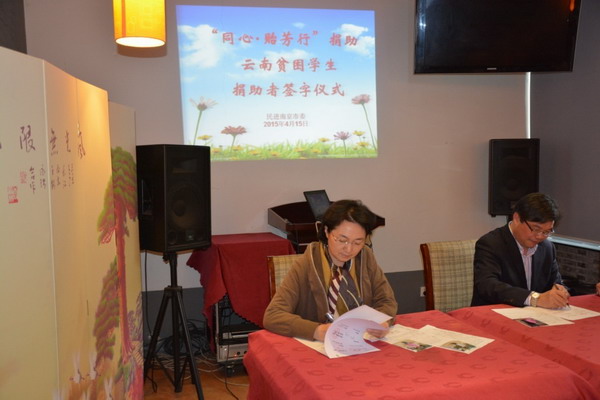 4月15日下午,民进南京市委召开“同心.贻芳行”云南永胜帮扶工作回顾座谈会暨捐助贫困学生捐助者签字仪式,民进市委主委陈华、副主委陶琪、参加帮扶工作的会员和部分社会爱心人士参加了座谈会,中共江苏省委统战部党派处处长王耀强、民进省委社会服务处处长褚玉琴应邀出席,陶琪主持了座谈会。