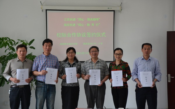 2015年是实施“同心.阳光助学(宿迁)行动”的第三年,为充分发挥民进教育资源优势,进一步拓展深化帮扶工作成果,建立长效帮扶机制,实现“加强乡镇学校教师队伍建设,提高教育教学质量”的目标,推动归仁镇中、小学教育水平再上新台阶。5月14日,在民进南京市委的主持下,南师附中宿迁分校与泗洪县归仁中、小学校际交流合作协议签约仪式在南师附中宿迁分校举行。