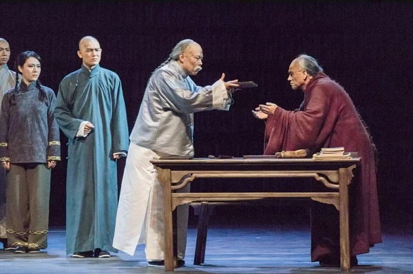 话剧《刻经》剧照,杨彦饰演杨仁山。
